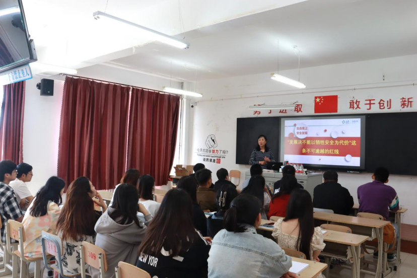 6月4日上午,为使学生了解企业的生产形式与工艺情况,徐飞经理对学生们进行了生产工艺培训,内容包括公司产品简介、各工段简介、项目选址和布置等,之后徐经理还展示了实习的工作环境、生活环境、交通设施及娱乐设施的实景照片,为学生们未来的实习工作和生活提供有利保障。张丽老师对学生们进行了新员工安全教育培训,讲述了公司一直坚持着发展决不能以牺牲安全为代价这条红线,并结合吉林丰宝源、义马气化厂等实例再次向大家强调安全问题在化工生产中的重要性。张丽老师从《中华人民共和国宪法》、《安全生产法》、《安全生产行政法规》、《安全生产标准》等有关法规,让学生在生产过程中注重自身安全,使学生们真正做到“无危则安,无险则全”。