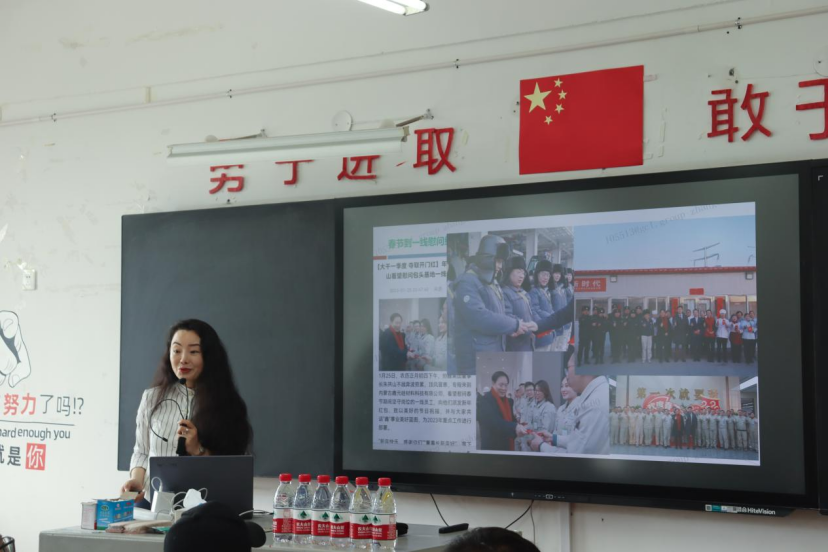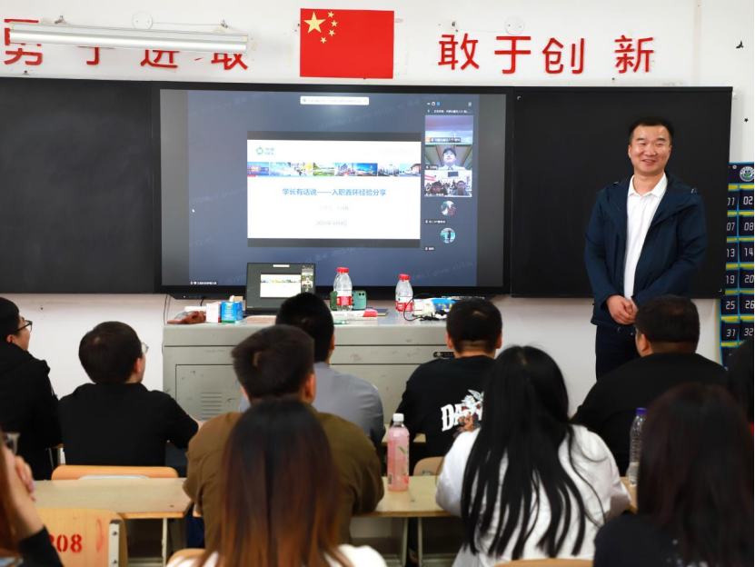 4日下午,为使同学们更加放心的进入和了解企业,培训现场与目前正在鑫环工作的我院2019级学生王国栋进行了视频连线,进行了“学长有话说”的环节,王国栋为现场同学介绍了自己到工作岗位后的成长与体会,并分别从“衣食住行”等多方面为现场同学答疑解惑。