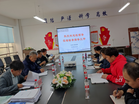 为全面了解本学期我院期中教学检查工作开展情况,根据《欧博abg游戏登录入口2023-2024第二学期期中教学检查实施方案》的工作安排,2024年5月10日下午,副校长胡文、教学质量监控与评估中心主任张耘、教务处纪大伟、鞠然莅临我院开展期中教学检查指导工作。学院院长杨昕、教学副院长彭殿宝、各系主任参加迎检。