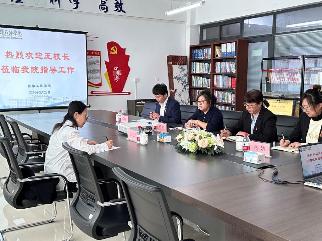 2024年3月28日下午,校长王义宁深入化学工程学院,与学院党政领导班子进行座谈交流,开展调研指导工作。学院党政领导班子全员参加。