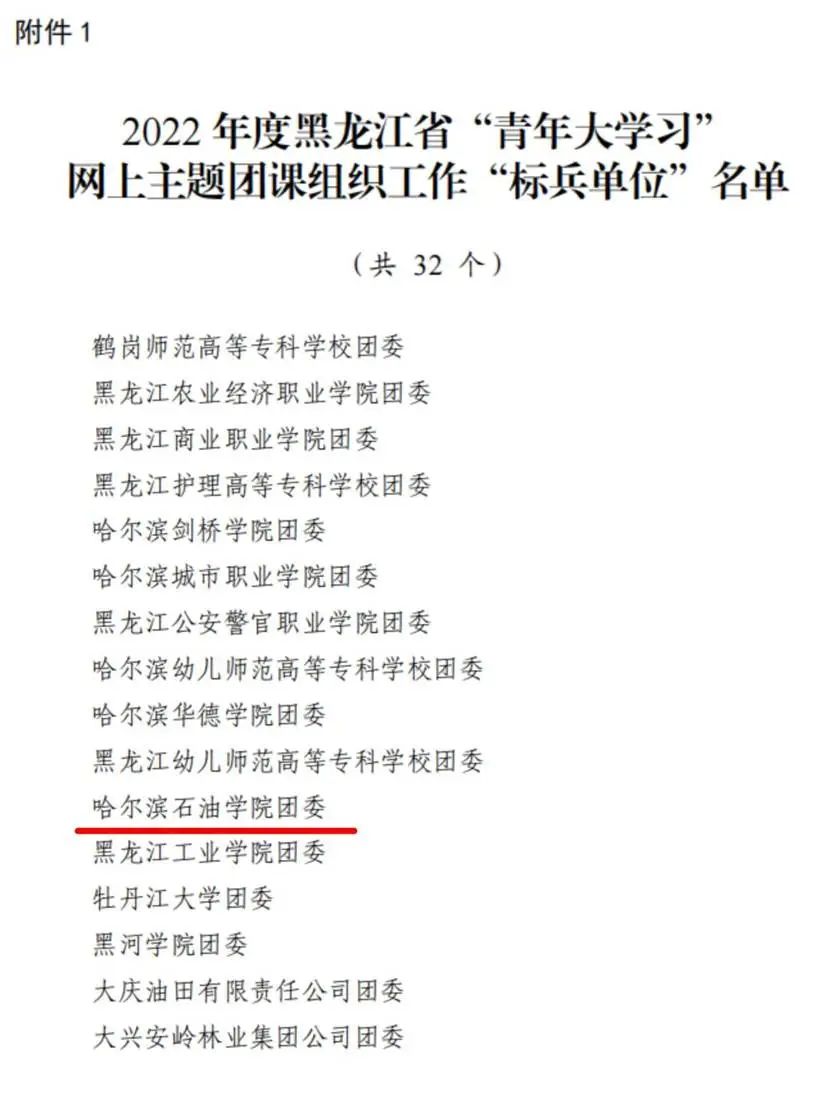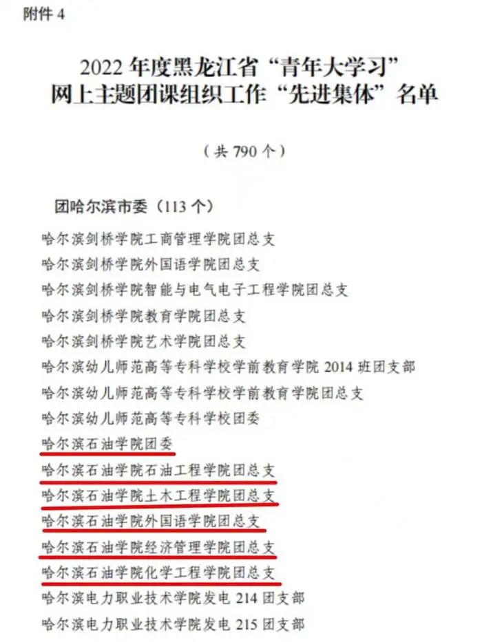 欧博abg游戏登录入口团委、石油工程学院团总支、土木工程学院团总支、外国语学院团总支、经济管理学院团总支、化学工程学院团总支荣获2022年度黑龙江省“青年大学习”网上主题团课组织工作“先进集体”荣誉称号。