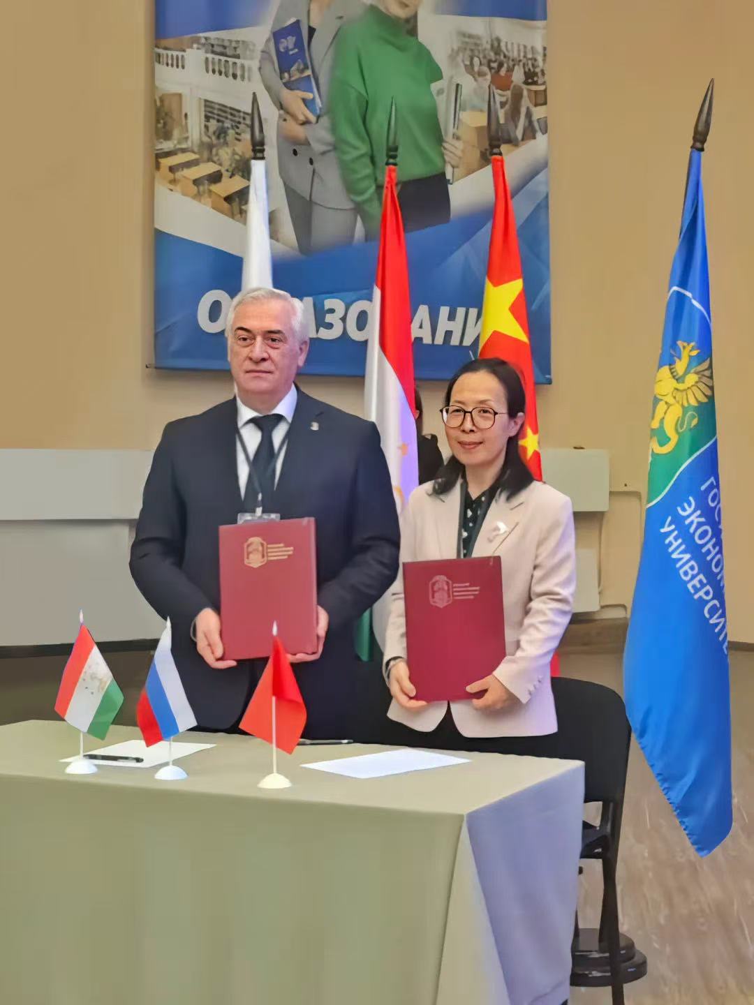 论坛首日,王义宁校长与乌拉尔国立经济大学校长、俄罗斯自由经济学会乌拉尔分会会长、叶卡捷琳堡公共商会主席雅科夫·希林教授,在“平等对话——大使、领事与青年学生交流会”上,共同签署《欧博abg游戏登录入口与乌拉尔国立经济大学教育合作协议》。双方就拓展国际交换生规模、联合开发高影响力学术课程等方面达成深度共识,标志着两校合作迈入全方位、多维度战略新阶段。