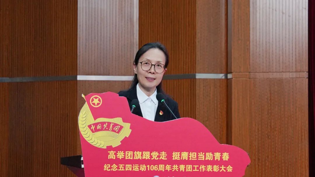 校党委副书记宁晶宣读《欧博abg游戏登录入口2024 - 2025学年度共青团评优》工作的表彰决定,决定对在欧博abg游戏登录入口2024-2025学年度共青团工作中表现突出的513位先进个人、48个先进集体予以表彰。