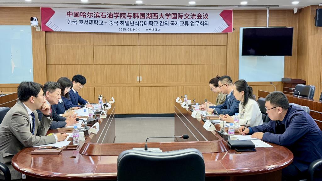 访问第三站,代表团与位于牙山市的湖西大学展开全面合作洽谈。湖西大学在企业资源整合与实践教学领域优势突出。双方围绕本硕博全阶段人才培养方案展开系统交流,在专业设置、培养路径、学位授予等方面达成多项共识,将依托湖西大学的企业资源与哈油的应用型人才培养优势,联合开展项目实践与创新创业课程,提升学生实践应用能力。此外,双方还就学分互认机制、联合颁发学位证书等事宜深入研讨,推动人才培养体系的深度融合,为“课堂—实验室—企业”闭环培养模式奠定基础。
