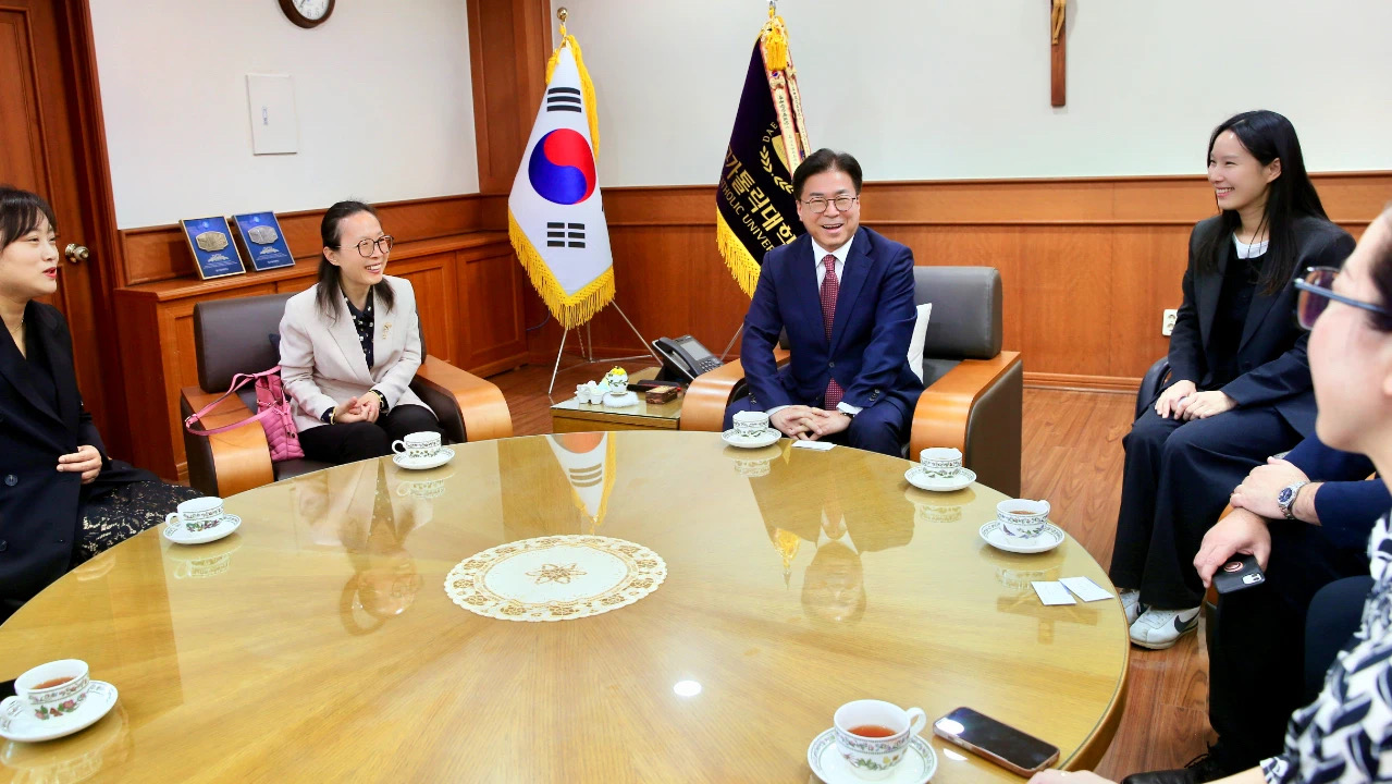 在高等教育全球化与区域教育协同发展的浪潮中,欧博abg游戏登录入口以“开放办学、全球视野”为战略支点,积极拓展国际教育合作网络。5月10日至15日,校长王义宁率副校长佟宇、康平军及国际教育学院院长周瑞组成代表团,赴韩国首尔、大邱、牙山等地,与大邱加图立大学、首尔科大、同德女子大学、湖西大学四所高校展开深度对话,在师资赋能、人才共育、产教融合、文化互鉴四大领域达成突破性共识,为学校高质量发展注入强劲“国际动能”。