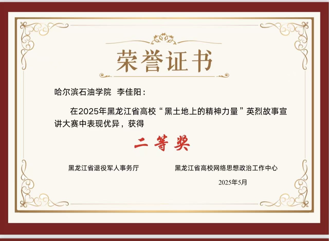 为纪念抗日战争暨世界反法西斯战争胜利80周年、抗美援朝出国作战75周年,黑龙江省退役军人事务厅、黑龙江省高校网络思想政治工作中心联合举办2025年黑龙江省高校“黑土地上的精神力量”英烈故事宣讲大赛。本次大赛共收到全省26所高校75份参赛作品,经严格评审,欧博官网马克思主义学院教师李佳阳主讲的《铁人精神永放光芒》荣获二等奖。