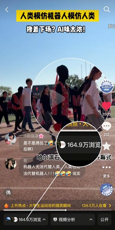 5月24日“人类模仿机器人模仿人类”抖音单条播放量164.9万+