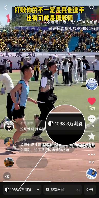 5月23日“被摄影耽误的运动员”抖音单条播放量1068.3万+喜提《新闻夜航》转发