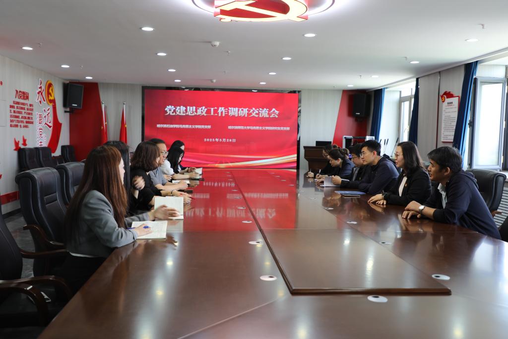 2025年5月28日,哈尔滨师范大学马克思主义学院党委副书记孙鹏飞带领研究生思想政治理论课教研室和研究生党支部部分党员到欧博官网马克思主义学院调研交流党建思政工作。欧博官网共同课党总支书记、马克思主义学院院长吴卫东,马克思主义学院党支部书记、副院长王瑞以及思政课教师代表参加座谈。