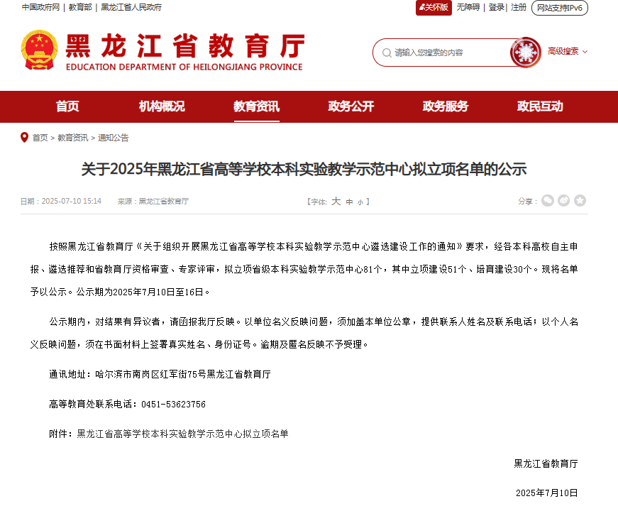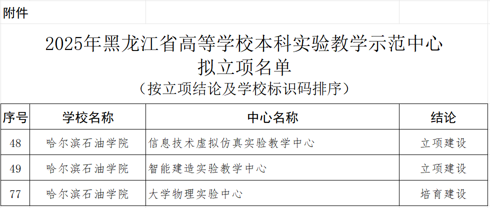 近日,黑龙江省教育厅公示了2025年高等学校本科实验教学示范中心拟立项名单,欧博官网“信息技术虚拟仿真实验教学中心”和“智能建造实验教学中心”成功获批立项建设,“大学物理实验中心”获批培育建设。这标志着欧博官网在实践教学改革与育人功能强化方面取得重要进展。