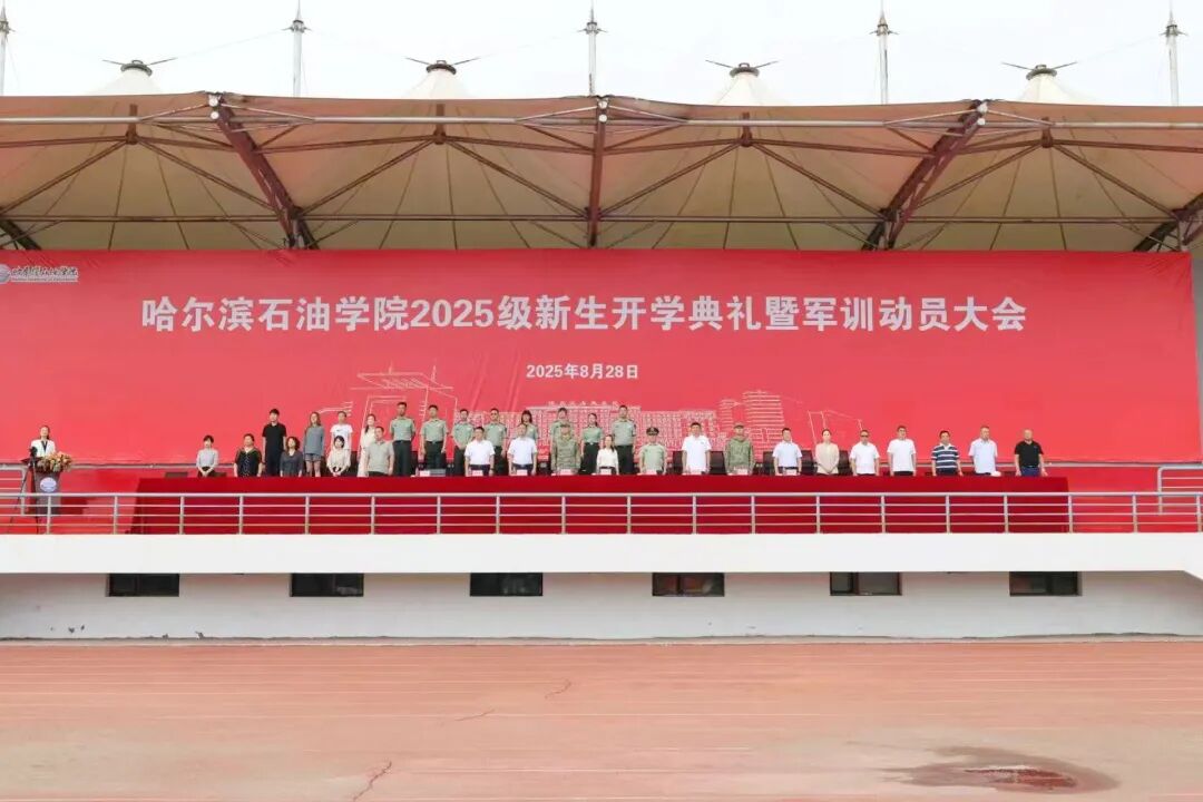 8月28日,欧博官网在体育场召开2025级新生开学典礼暨军训动员大会。全体校领导、各部门党政主要负责人及2025级新生辅导员参加大会。大会由党委副书记宁晶主持。