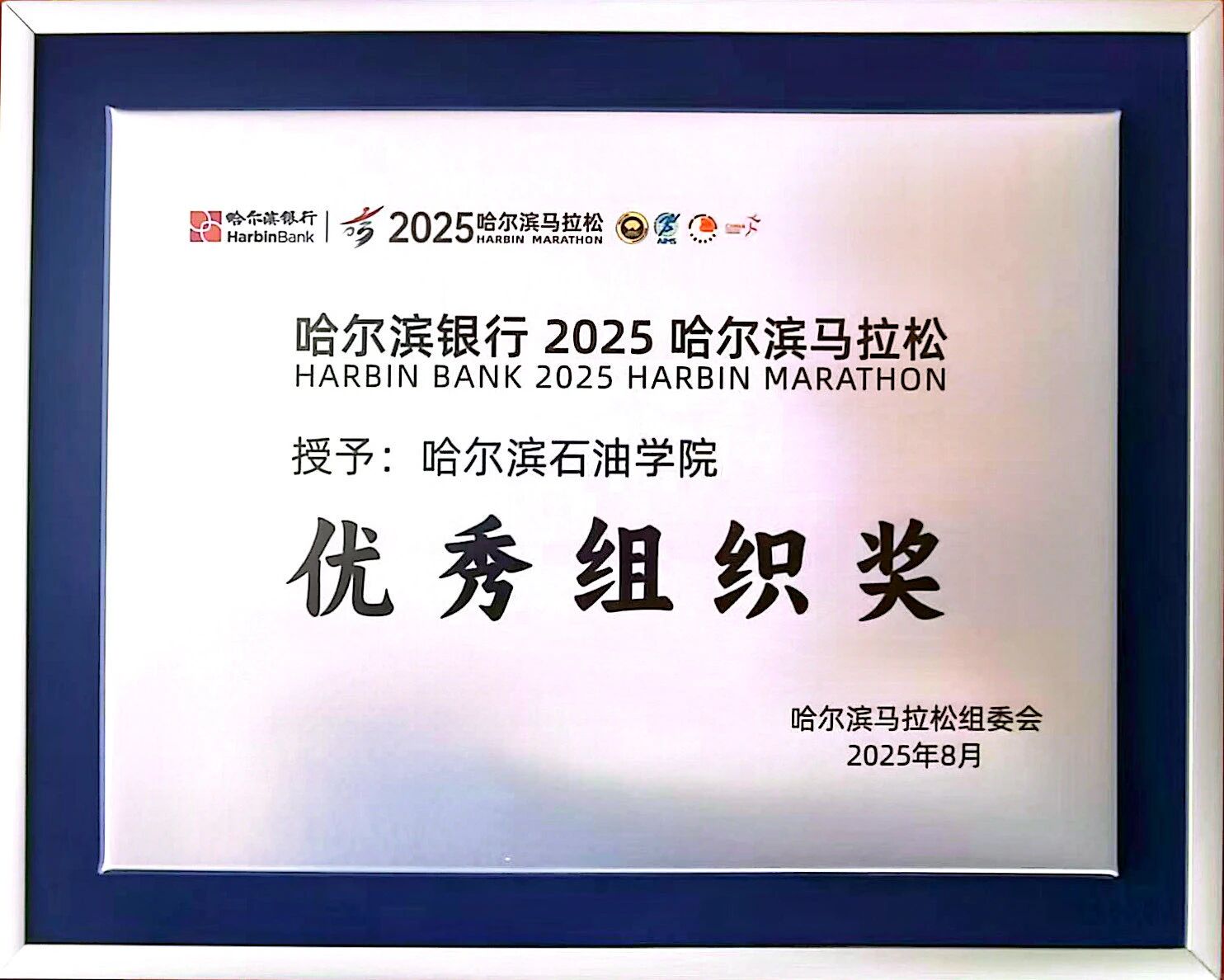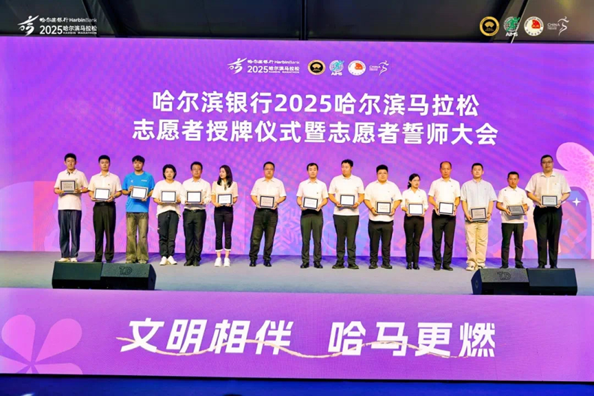 2025年8月30日下午,哈尔滨银行2025哈尔滨马拉松志愿者誓师大会于哈尔滨市文体旅产业博览会隆重启幕,欧博官网团委书记陈志勇代表学校与会,并接受中共哈尔滨市委社会工作部副部长王向春授牌。