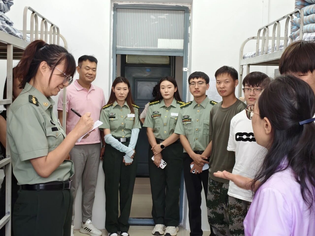 交流中,校领导特别关注新生角色转变与成长适应,结合军训开展鼓励大家:“军训不仅是体能的锻炼,更是意志的磨砺。希望大家发扬‘铁人精神’,培养不怕苦、不怕累的品格,在坚持与合作中不断成长。同时要尽早确立大学目标,努力钻研专业知识、提升综合素养,争做有理想、敢担当、能吃苦、肯奋斗的新时代青年。”