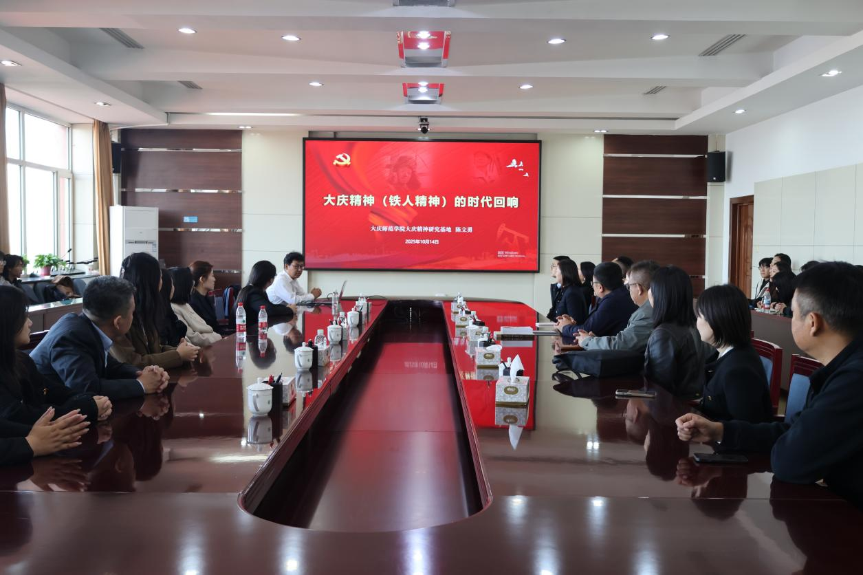 在听取讲座后,康平军副校长代表学校向大庆师范学院以及大庆精神研究基地主任陈立勇教授表示感谢,并希望参与此次研修学习的全体师生谨遵习近平总书记提出的“要把红色资源利用好、把红色传统发扬好、把红色基因传承好”的嘱托,走近大庆石油会战、走近铁人王进喜、走近新时代大庆,感受大庆石油会战激情燃烧的岁月和大庆精神(铁人精神)的磅礴力量,了解大庆油田勘探开发的历史进程和科技创新的探索过程,感悟习近平新时代中国特色社会主义思想的实践伟力。未来,学校将持续搭建红色教育平台,让铁人精神成为青年学子成长路上的“精神灯塔”,激励更多哈油青年以青春之我、奋斗之我,为中国式现代化建设贡献力量。