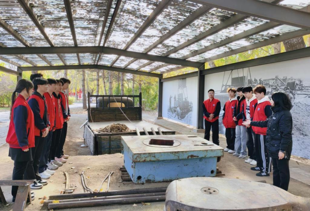 在铁人第一口油井,师生们依次参观了第一口油井、卸车台、值班房、地窝子等。在萨-55井旁,斑驳的钻井架静静伫立,仿佛仍在诉说着当年铁人王进喜人拉肩扛搬钻机,刨冰取水保开钻的场景。在会战生活体验区,干打垒土坯房反映了当时艰苦的生产生活条件,让大家深刻体会到老一辈石油人不断拼搏奋斗的豪情,就像一部立体的历史教科书,让铁人队伍严细认真的作风和艰苦奋斗的意志深深地烙印在每位师生心中。