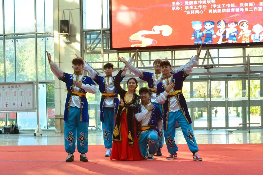 据悉,本次活动由学校党委宣传统战部主办;学生工作处(学生工作部、武装部)、团委、“百籽同心”民族团结教育辅导员工作室联合承办,涵盖文艺表演、文化讲解、服饰体验、美食品鉴、民族活动体验等板块。舞台上,同学们载歌载舞,用歌声和舞姿展现了各民族文化的独特风采,赢得了现场师生的阵阵掌声与喝彩;在舞台两侧的展区,前来参加活动的师生穿戴民族特色服饰、聆听民族文化、品尝民族特色美食、体验民族文化,深切感受了中华文化的绚丽多彩和博大精深。