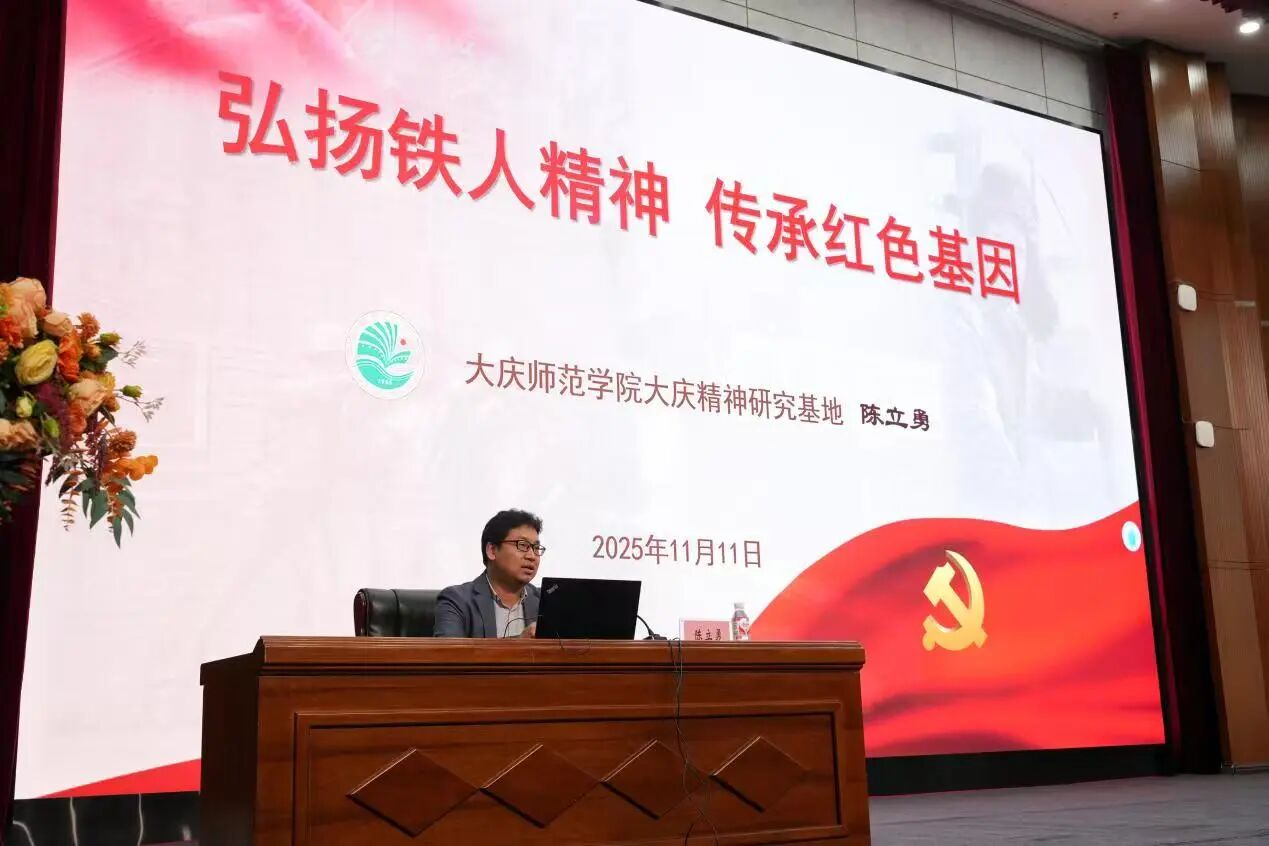 思政课理论教学有内涵,讲座讲的有魅力、有张力、有活力。欧博官网特邀大庆师范学院陈立勇教授做题为《弘扬铁人精神 传承红色基因》的专题讲座。陈立勇教授从王进喜终身奉献国家石油事业、矢志改变石油落后面貌、着力提升攻坚啃硬本领、忠诚践行党的初心使命以及清正廉明拒腐蚀永不沾五个专题内容,结合大量真实案例和个人实践感悟,从历史脉络、时代内涵、现实意义三个维度,系统阐释了铁人精神的核心内涵,内容深入透彻、重点突出、系统全面,为现场师生搭建了清晰的理论认知框架。