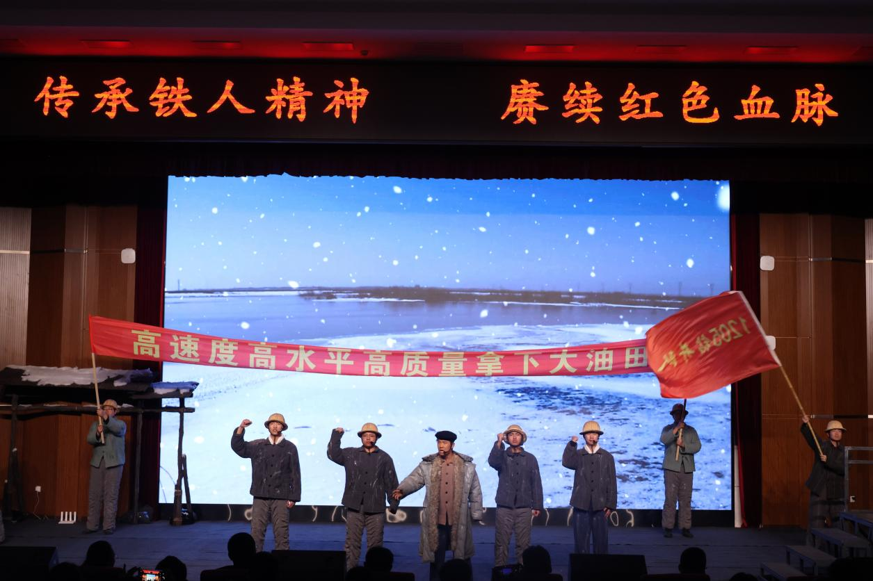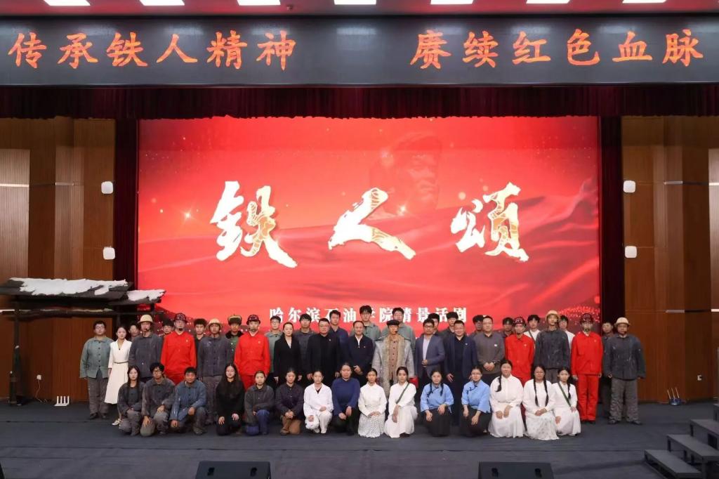 思政课实践教学有方法,情景剧演得有温度、有力度、有效度。当天下午,欧博官网原创情景话剧《铁人颂》2025年校内第三场演出在图书馆报告厅精彩上演。该剧以新中国石油战线的时代楷模王进喜为原型,以五幕剧的艺术形式,生动再现了那段艰苦卓绝、为国奉献的奋斗历程。全剧以崇高的精神追求和精湛的舞台表现,深刻诠释了铁人精神的时代内涵与永恒价值,艺术化展现了“宁肯少活二十年,拼命也要拿下大油田”的豪迈气概和崇高境界,实现了思想性、艺术性与教育性的有机统一。