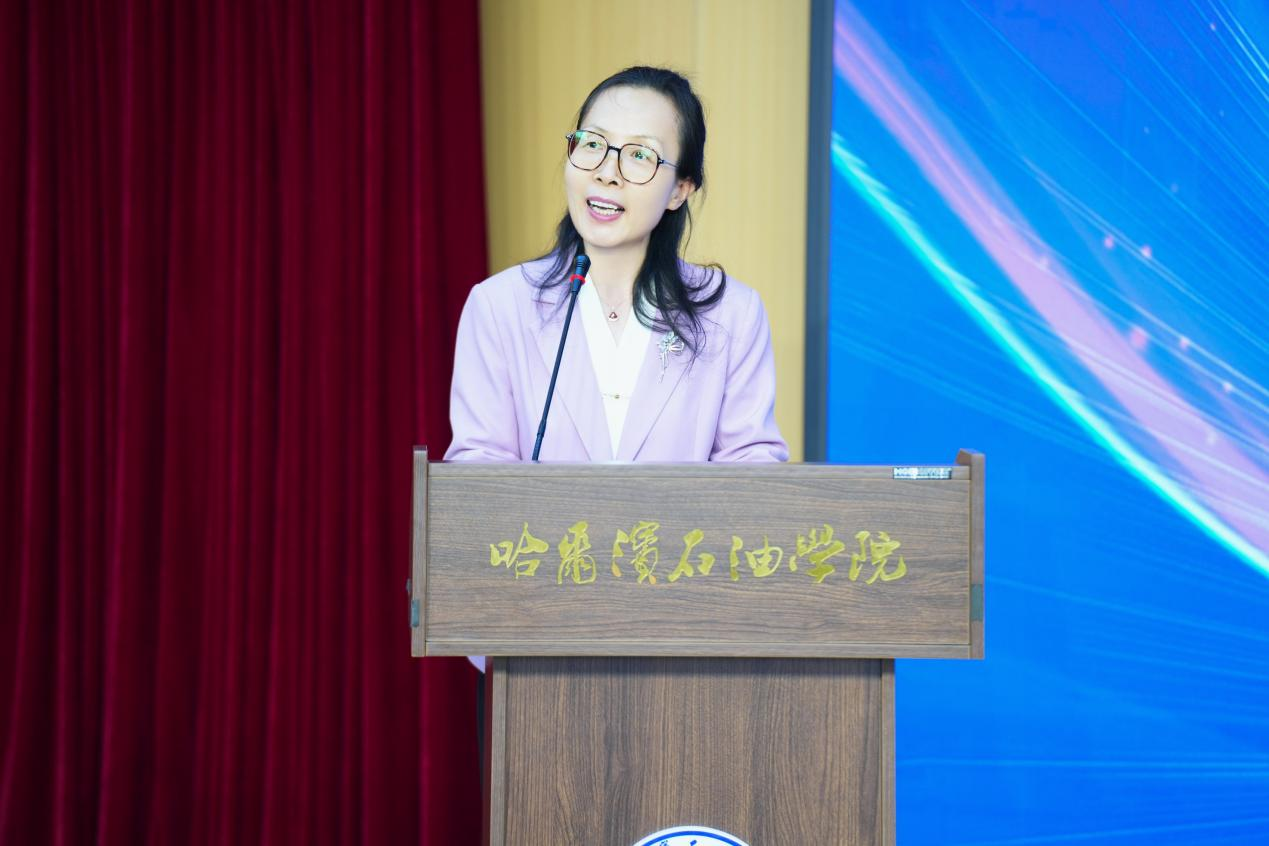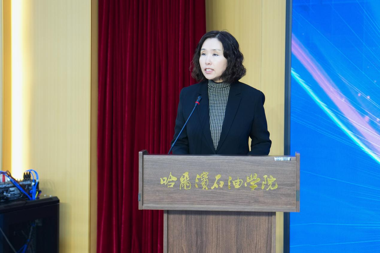 会上,黑龙江省高等学校大学外语教学指导委员会主任委员、佳木斯大学副校长隋晓冰教授致辞。她指出,教师数字素养是教育现代化的核心支撑,中心的成立是整合全省优质教育资源、推动教师队伍高质量发展的重要抓手,期待其成为龙江教师数字能力提升的“加速器”与“智囊团”。北京外研在线数字科技有限公司市场高级总监韦亚菲女士代表协办企业表态,将依托前沿数字技术平台与专家资源,深度参与中心建设,为教师数字素养提升提供技术赋能。