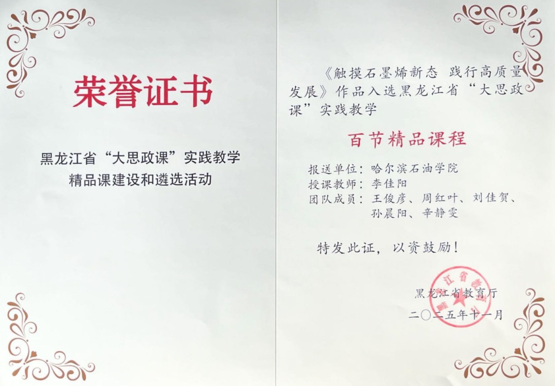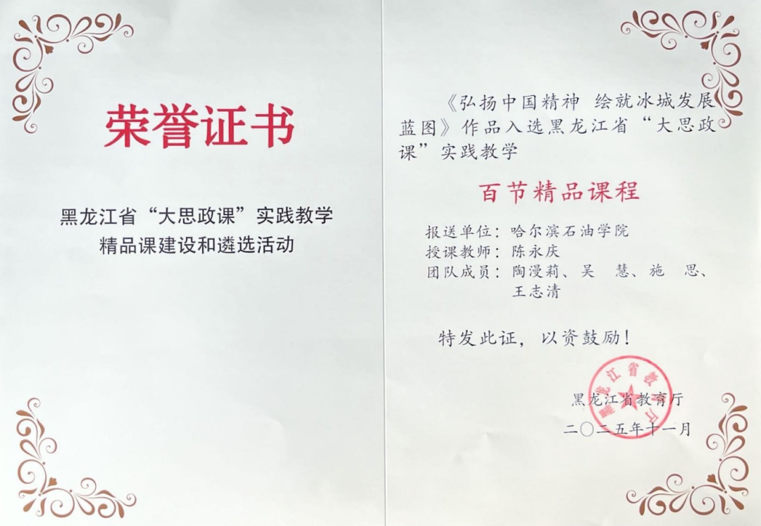 此次入选的四部作品紧扣龙江特色,采用“实景教学+理论阐释”模式,将铁人精神、科技创新等元素融入教学,实现理论与实践的深度融合,是欧博官网持续深化“大思政课”建设取得的阶段性成果。