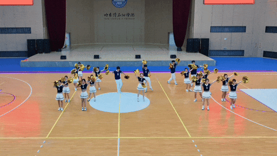 来看本届比赛评委团——主裁判为黑龙江省啦啦操委员会赛事中心主任、黑龙江省健美操协会副秘书长、啦啦操国家级裁判员刘楠,还有校团委书记陈志勇,体育教研部主任谭波、副主任李静宇、教师吕金莹组成的评审团,用专业眼光为每支队伍打分。
