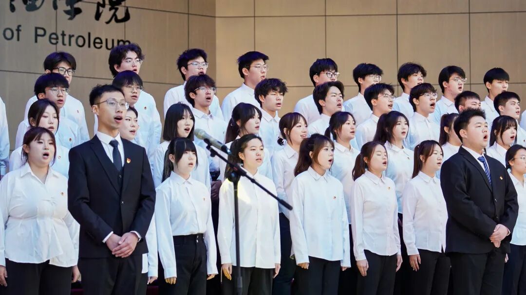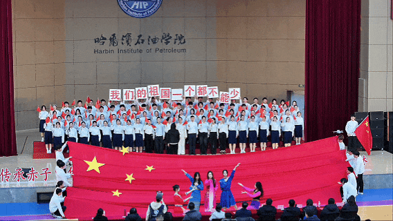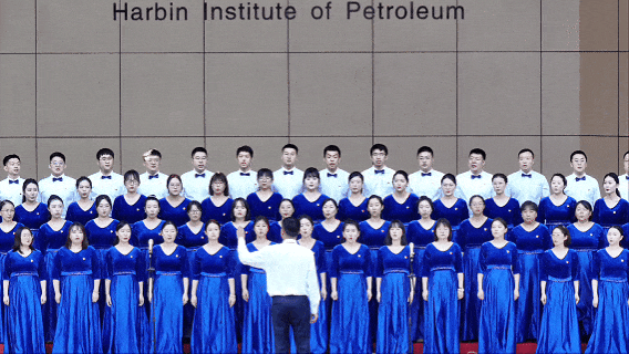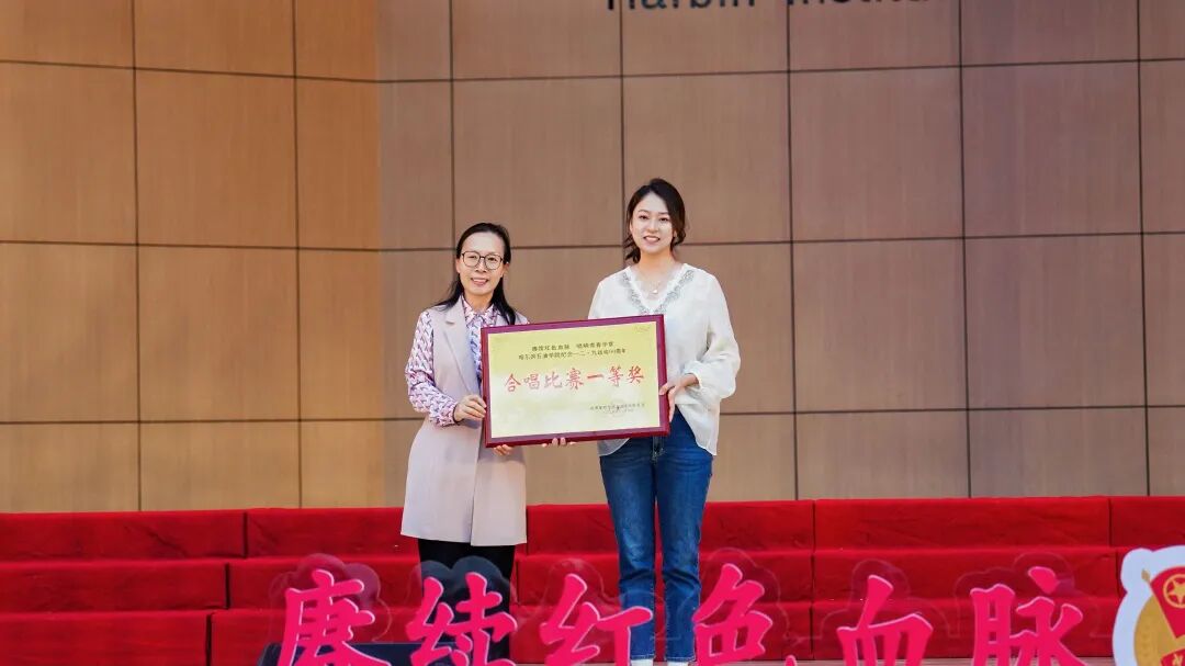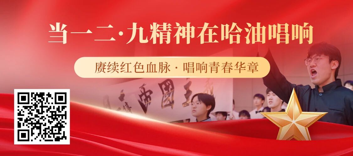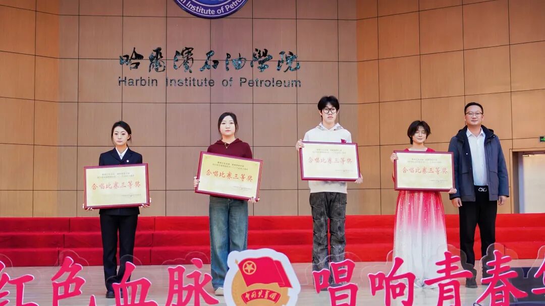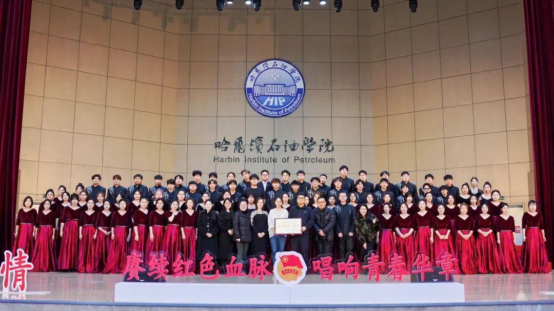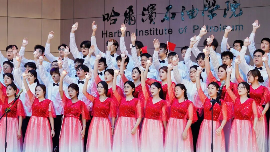 比赛环节结束后,校院两级学生干部代表与紫丁香合唱团分别献上表演曲目《相亲相爱》与《紫荆花盛开》,为现场增添了温暖与华彩。一曲曲时代强音唱响了哈油学子对历史的敬意、对祖国的热爱与对未来的憧憬。