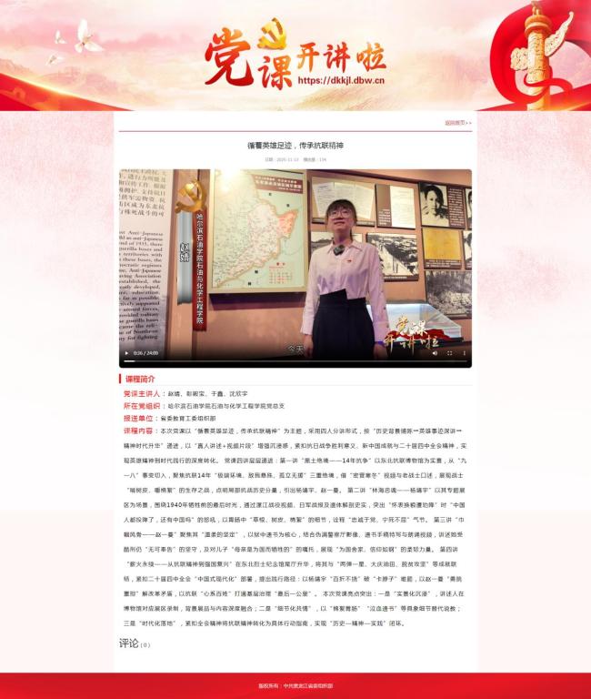 石油与化学工程学院党总支的《循着英雄足迹,传承抗联精神》,走进抗联博物馆实景讲述,推动红色历史时代化转化。