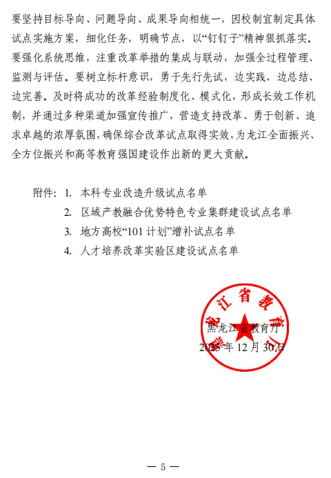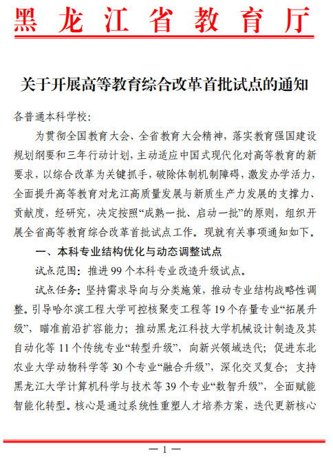 近日,黑龙江省教育厅公布了《关于开展黑龙江省高等教育综合改革首批试点的通知》,欧博官网3个专业成功入选全省首批“本科专业改造升级试点”。这是欧博官网深化教育教学改革、推进专业内涵式高质量发展的重要突破。