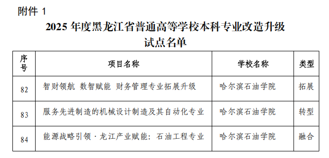 此次入选的3个专业精准对接龙江“4567”现代化产业体系发展需求,各有建设特色:财务管理专业以数智赋能开展拓展升级,重塑智能财务人才培养体系;机械设计制造及其自动化专业面向先进制造产业完成转型升级,推动传统机械向智能制造迭代;石油工程专业开展融合升级,以AI与绿色技术交叉赋能能源产业发展。三个专业将与欧博官网6个专业集群建设联动,深化产教融合,为区域经济高质量发展输送优质人才。