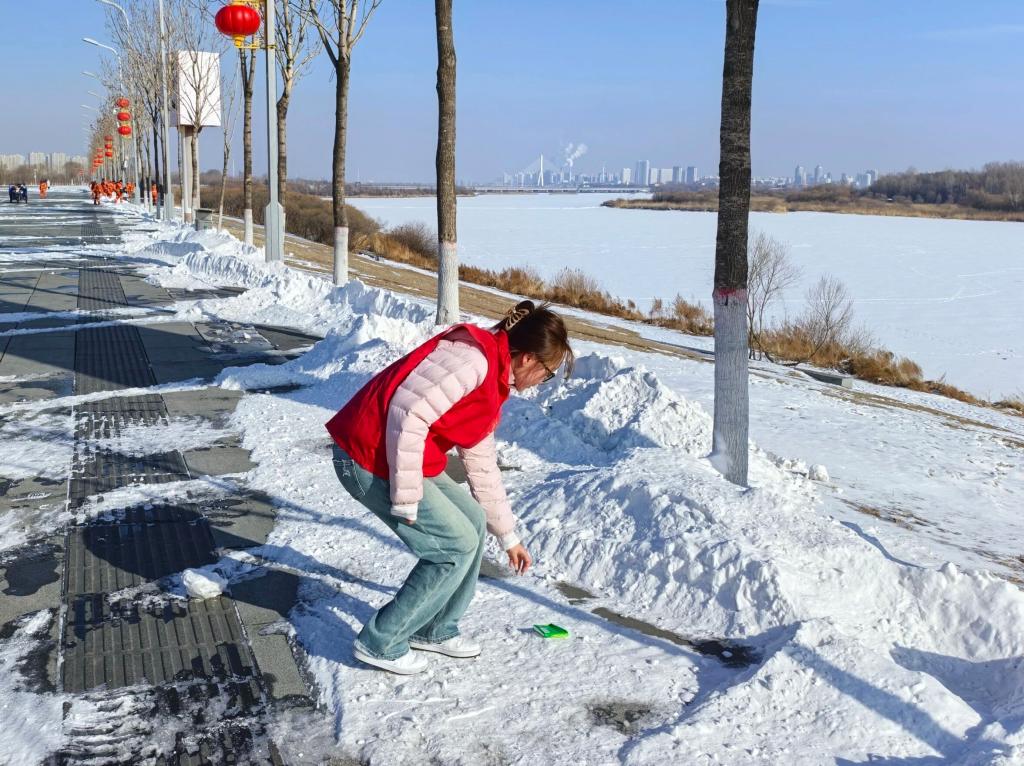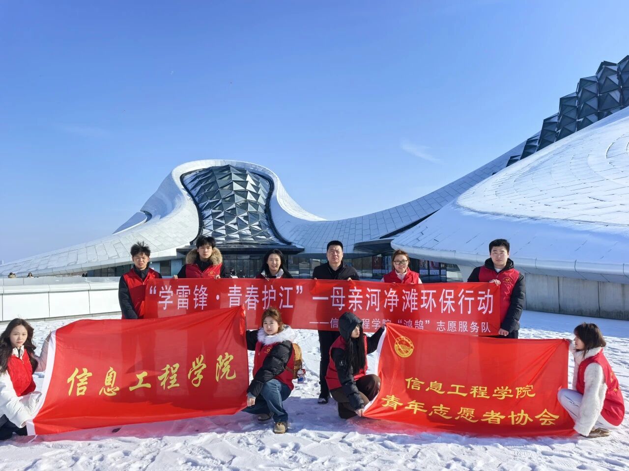 信息工程学院青年志愿者走进哈尔滨大剧院江畔,围绕“保护母亲河”开展净滩行动。他们躬身拾捡、分类清运,发放倡议书、劝导不文明行为,在江风中进行生态守护集体宣誓,将雷锋精神融入生态文明建设大局,以青春之名守护碧水长流。