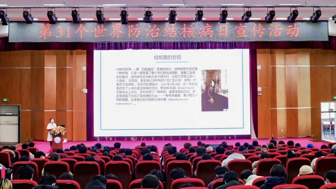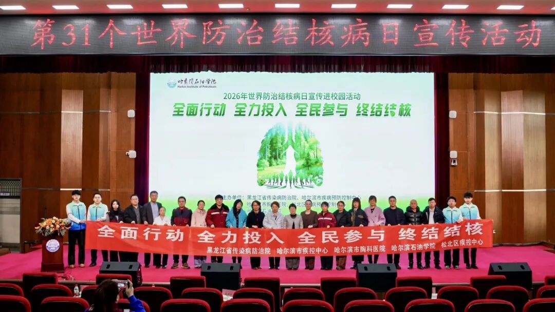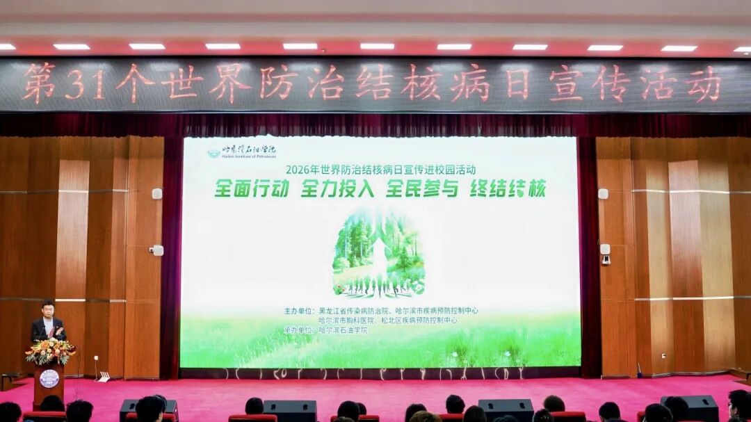 3月20日上午,由黑龙江省传染病防治院、哈尔滨市疾病预防控制中心、哈尔滨市胸科医院、松北区疾病预防控制中心主办,欧博abg游戏登录入口承办围绕“全面行动、全力投入、全民参与、终结结核”主题的2026年世界防治结核病日宣传进校园活动在学校图书馆报告厅举行。