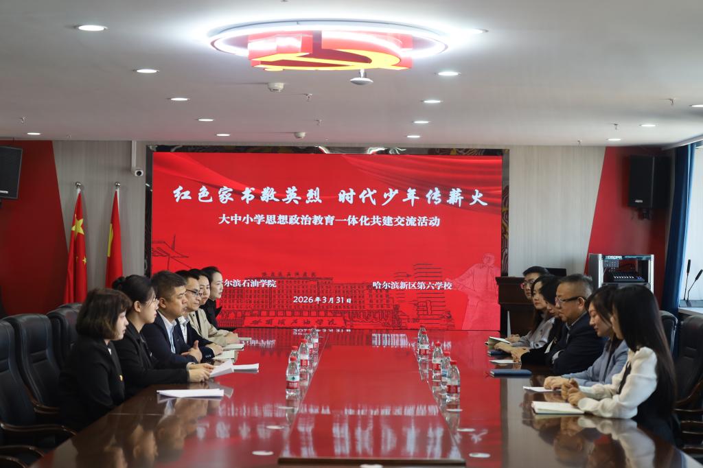 清明时节,缅怀先烈;红色浸润,薪火相传。为深入推进大中小学思想政治教育一体化建设,传承红色基因、厚植家国情怀,2026年3月31日,哈尔滨新区第六学校党支部副书记李博、大队辅导员何晓慧带领少先队员代表来到欧博官网,联合开展“红色家书敬英烈 时代少年传薪火”大中小学思想政治教育一体化共建交流活动,并举行“红色文化实践教育基地、少先队活动基地”授牌仪式,马克思主义学院院长吴卫东、党总支书记、副院长王瑞出席活动、马克思主义学院全体教师、大学生代表参加本次活动。