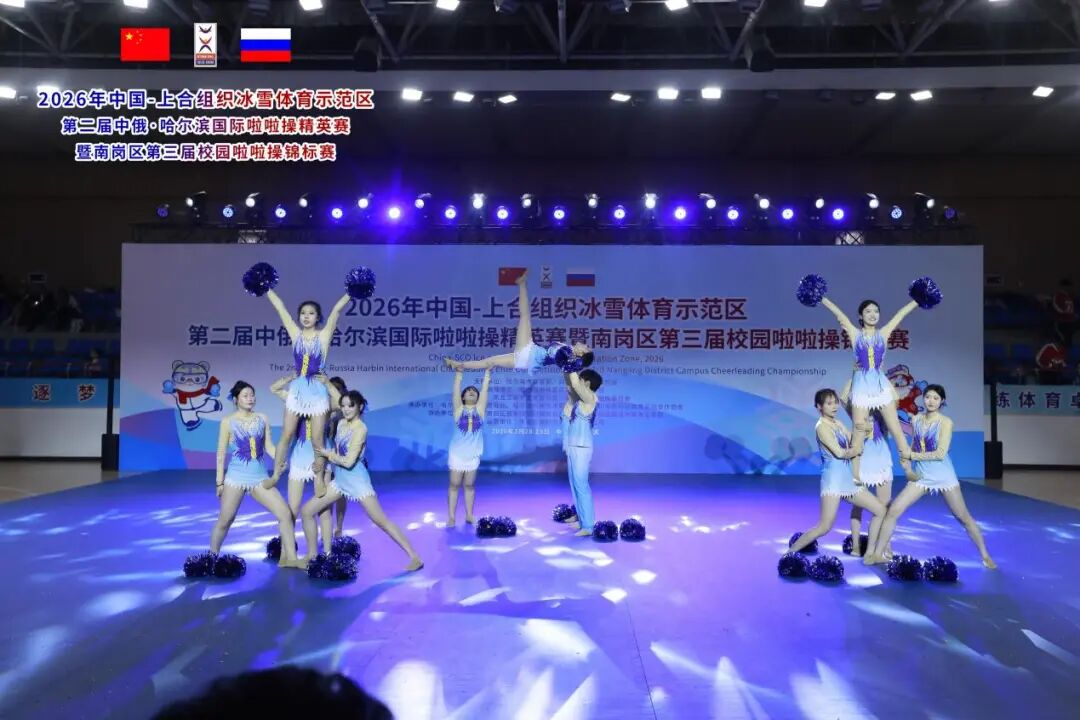3月28-29日,2026年中国-上合组织冰雪体育示范区第二届中俄·哈尔滨国际啦啦操精英赛暨南岗区第三届校园啦啦操锦标赛在哈尔滨市人民体育馆圆满落幕。