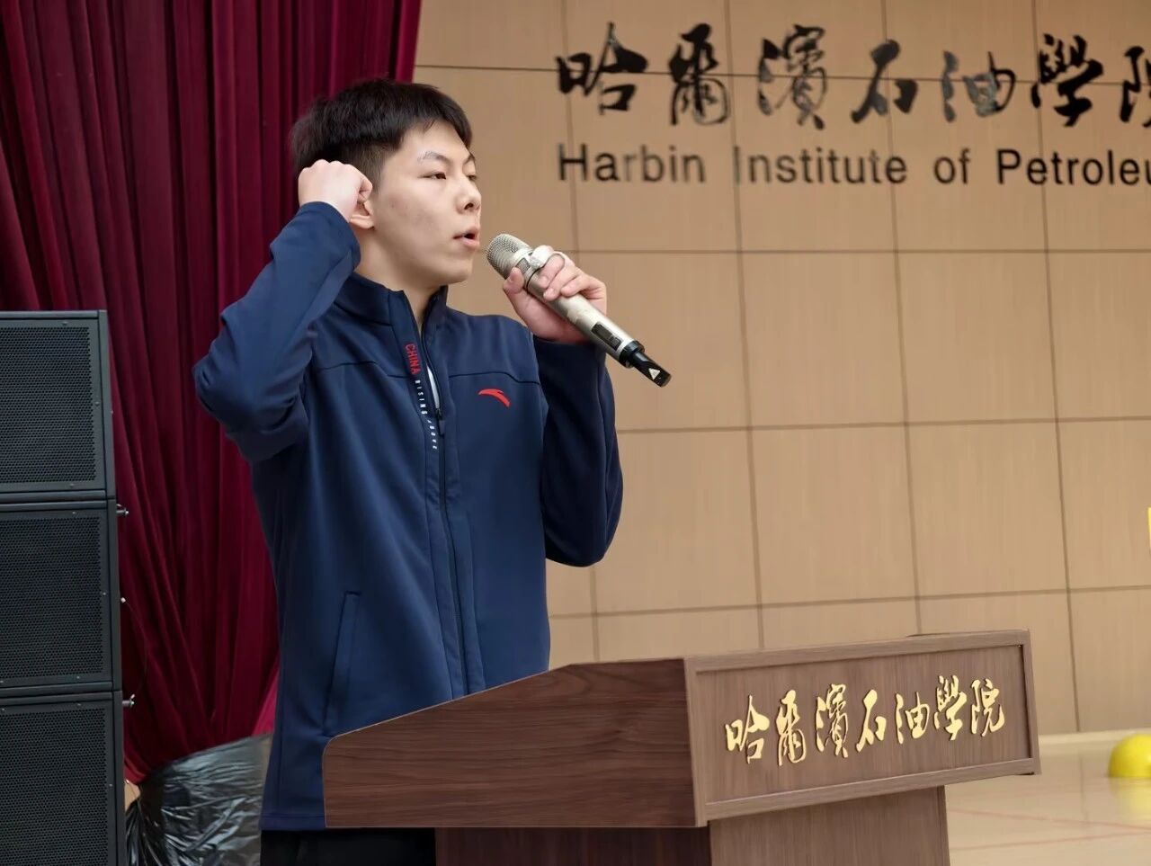 裁判员代表2024级石油与化学工程学院由一然同学代表全体裁判员宣誓