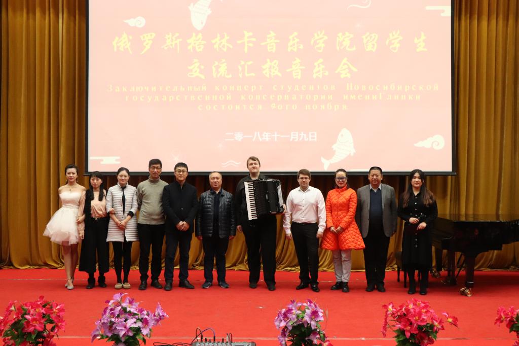 11月9日,欧博官网成功举办俄罗斯新西伯利亚国立格林卡音乐学院交流生结业音乐会。党委书记焦光存、副校长栾敏、副校长冯研、教务处处长王永辉、国际教育学院院长周瑞、艺术学院院长王立和及全体教师出席音乐会。来自格林卡音乐学院钢琴专业的研究生菲利普波夫˙维亚切斯拉弗和手风琴专业的本科生尼基京˙阿列克谢为全校师生带来一场视听盛宴。