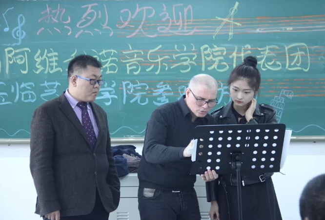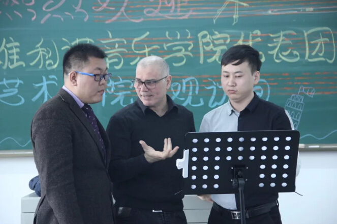 会后,Pasquale Tizzani教授与艺术学院师生进行学术交流,声乐教师与学生现场演唱,Pasquale Tizzani教授亲自指导,包括呼吸的方法、单词的发音、换气的位置及感情的表达等等,师生们表示受益匪浅。