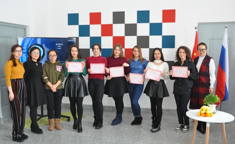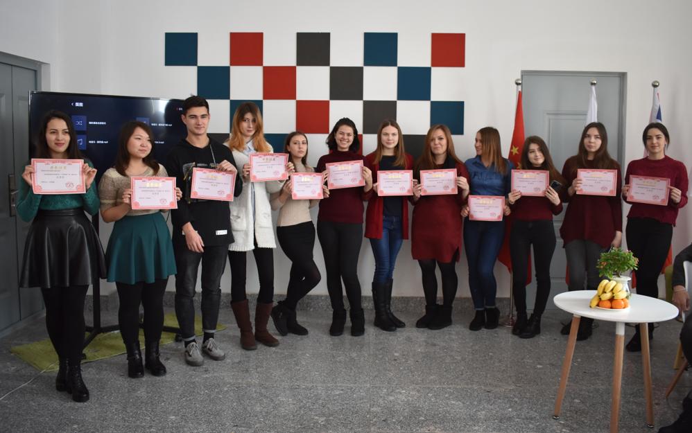 结业仪式由国际教育学院教师赵洪伟和外籍教师伊丽娜中俄双语共同主持,两位老师首先带领大家共同回顾了《我们一起走过的2017》,然后对各位同学努力完成学业、顺利通过期末考试表示祝贺,对本学期各类活动中留学生取得的成绩给予肯定,并对学校排球赛、手绘脸谱大赛、毛笔字大赛中获奖同学给予表彰。