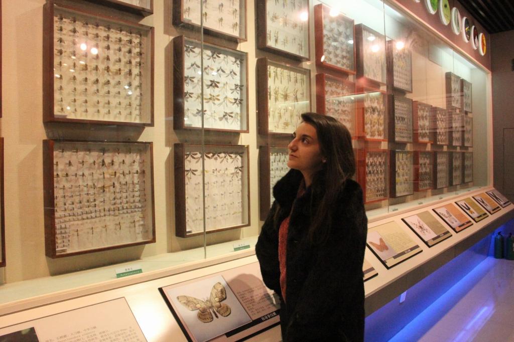 此次参观行程分为三部分:哈尔滨师范大学动植物博物馆、文博馆和斯拉夫文化中心,全程由斯拉夫语学院学生作讲解和翻译。动植物博物馆总面积约1000平方米,设有森林景观、草原景观、湿地景观、海洋景观、大型鸟兽、植物多样性、两栖爬行类、鱼类、无脊椎类、恐龙、昆虫、贝类、植物标本和古生物化石等13个展区,就像一部厚重的生物史和生物多样性教科书,展现出一幅千姿百态、栩栩如生的生命画卷。文博馆,现馆藏文物2000多件,产生年代覆盖了中国古代各历史阶段,其中不乏存世孤品和国内罕见的文物真品,镇馆之宝——释迦牟尼像、宋代影青连坐六角小瓶、齐白石真迹等珍品。讲解员逐一介绍展品的历史和文化内涵,这些历史文化遗存让学生们充分的体会到了生动的中国文化,无不赞叹它们的独特韵味。斯拉夫文化中心是斯拉夫语学院特有的独具俄罗斯风情的展馆,展厅中的文化艺术品、书籍、民族服饰等充分的展现了俄罗斯的民俗风情,参观后阿书记邀请周院长在文化中心的留言簿上签字留言。