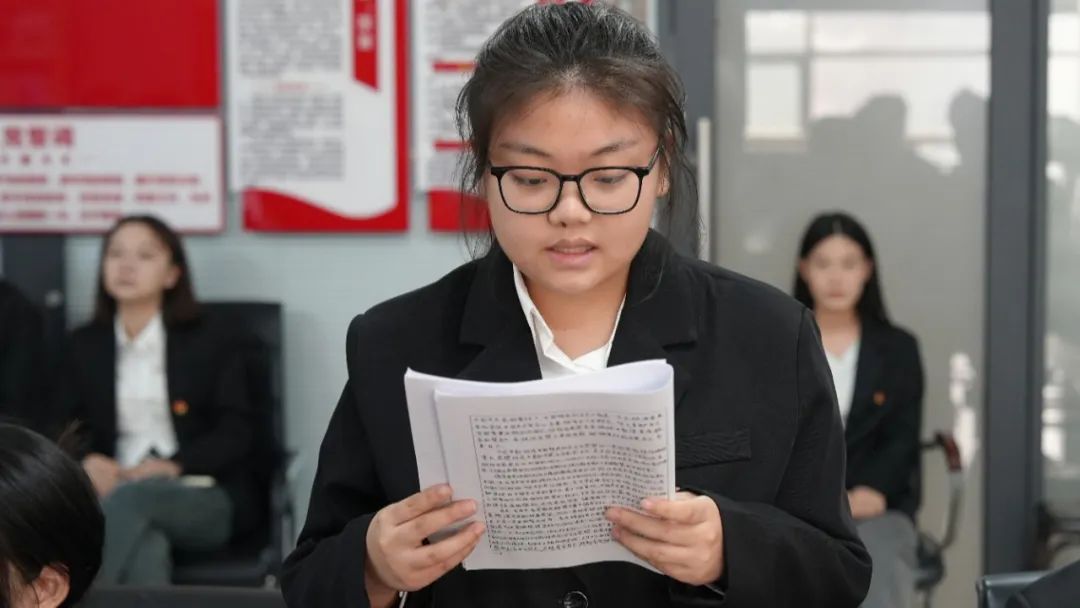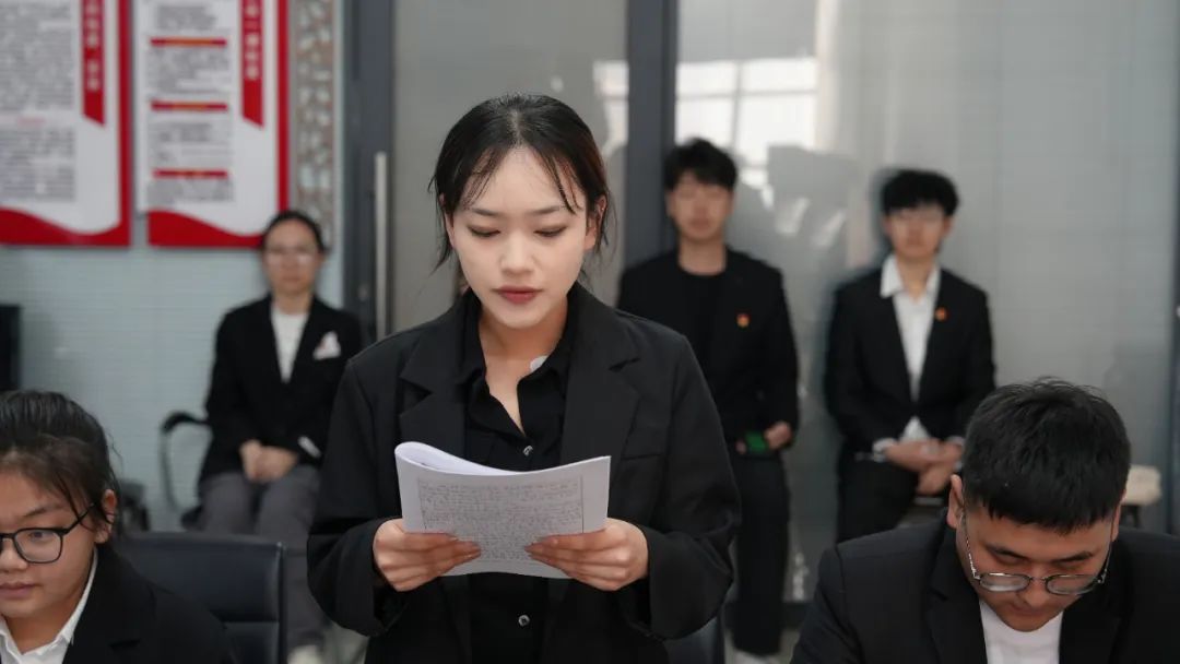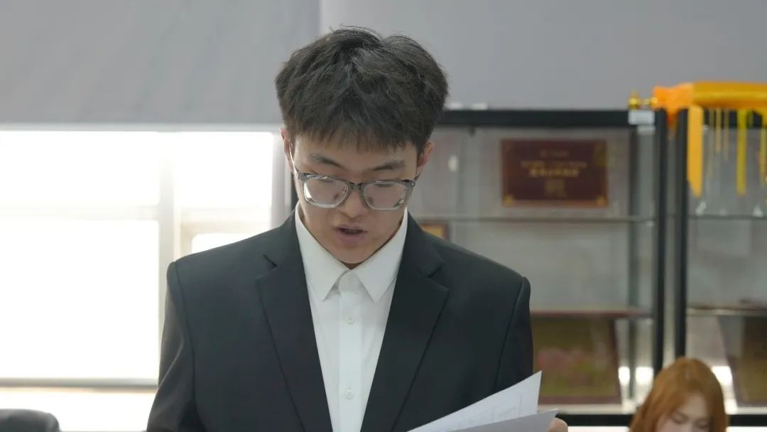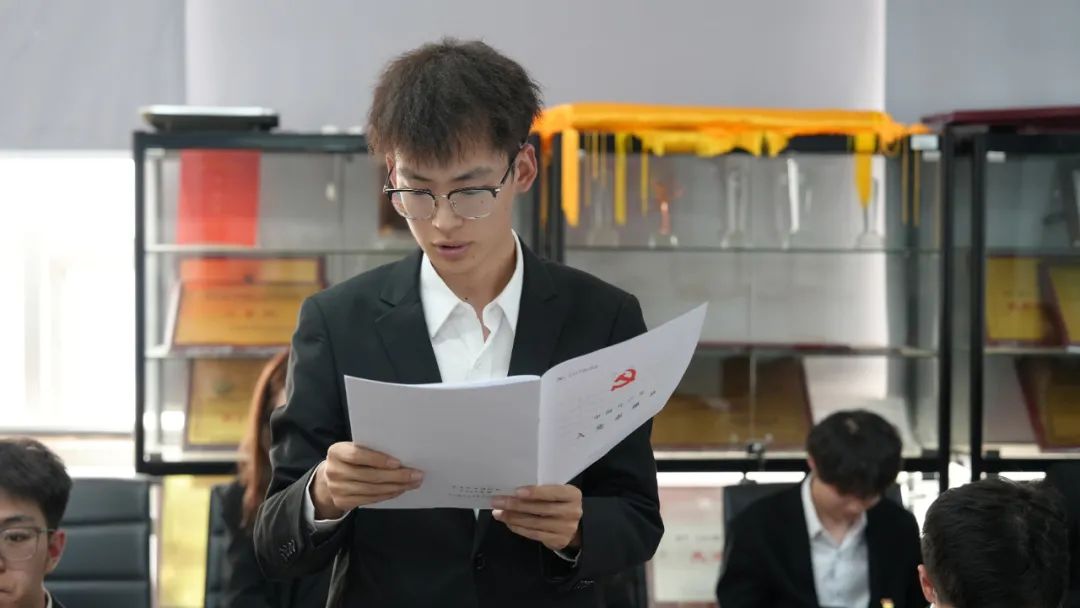 根据发展流程,郭力豪、姚明昊、张菊殊、隋海欣、胡欣雅、刘琳、薛川、蔡镓壕、胡冠华、周超、孙睿、吴垠浩12名发展对象依次发言,他们神情庄重,宣读入党志愿书,结合自身学习、实践和成长经历,讲述对党的认识、入党动机以及对未来的展望。有的同学分享了参与志愿服务活动的深刻感悟,意识到为人民服务的快乐与意义;有的同学提及在专业学习中,受优秀党员教师的影响,立志向党组织靠拢,以党员标准严格要求自己,为专业发展贡献力量。接着,入党介绍人详细介绍发展对象在培养考察期间的思想、学习、工作等表现,肯定其优点,并对不足之处提出建议。