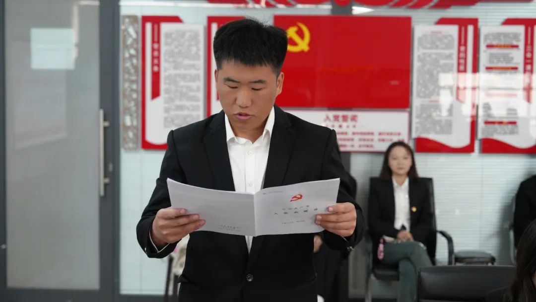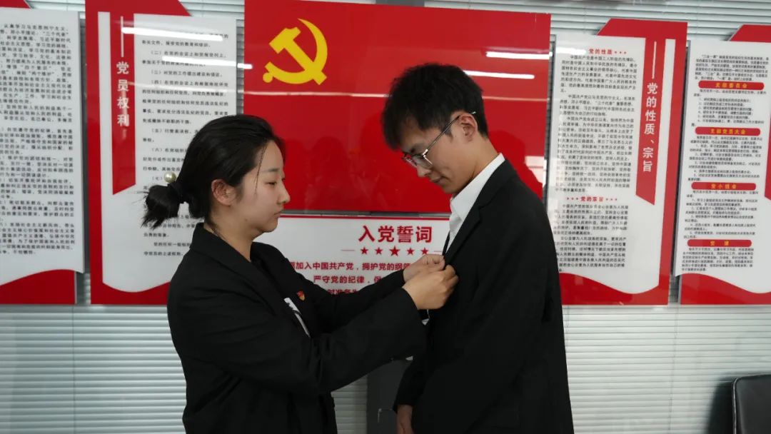经与会正式党员无记名投票,全票通过接收12名发展对象为预备党员。最终,经大会表决,一致同意接收郭力豪等12名发展对象为中共预备党员。新党员们在老党员的带领下庄严宣誓,他们声音洪亮,表达对党的忠诚和为党的事业奋斗终身的决心。随后,入党介绍人为党员们佩戴党徽,增强新党员们的责任感和使命感。