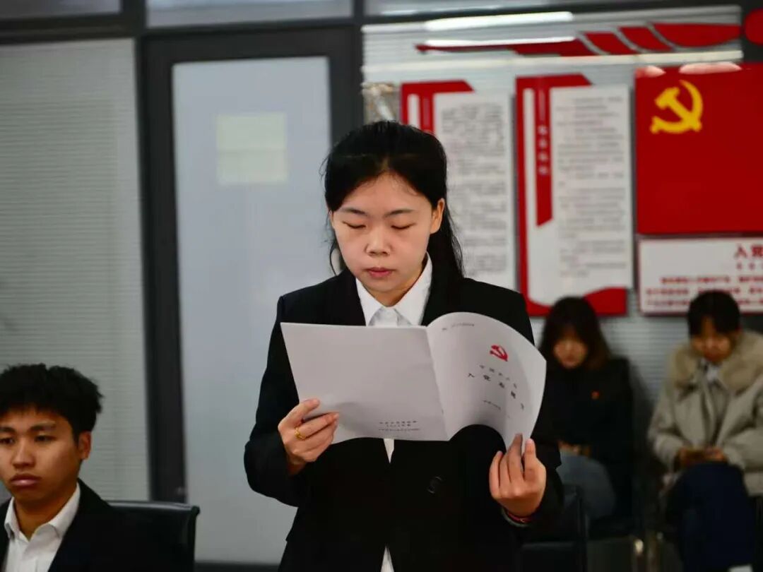 最后,支部书记对七名新预备党员表示祝贺,并提出了殷切希望。她要求新预备党员要不断加强党性修养,提高自身素质,积极发挥先锋模范作用,为学院的发展和党的建设作出更大贡献。