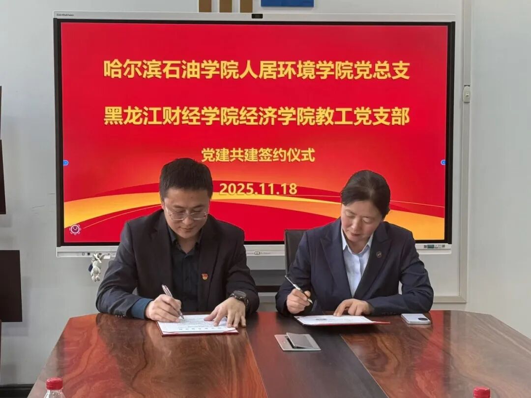 调研最后,人居环境学院教师党支部与黑龙江财经学院经济学院教工党支部签订党建共建协议。双方约定,将以此次共建为契机,建立常态化交流合作机制,在党建经验共享、特色品牌共创、党员队伍共建、产学研协同发展等方面开展深度合作,携手推动基层党建工作高质量发展,为培养担当民族复兴大任的时代新人贡献更大力量。