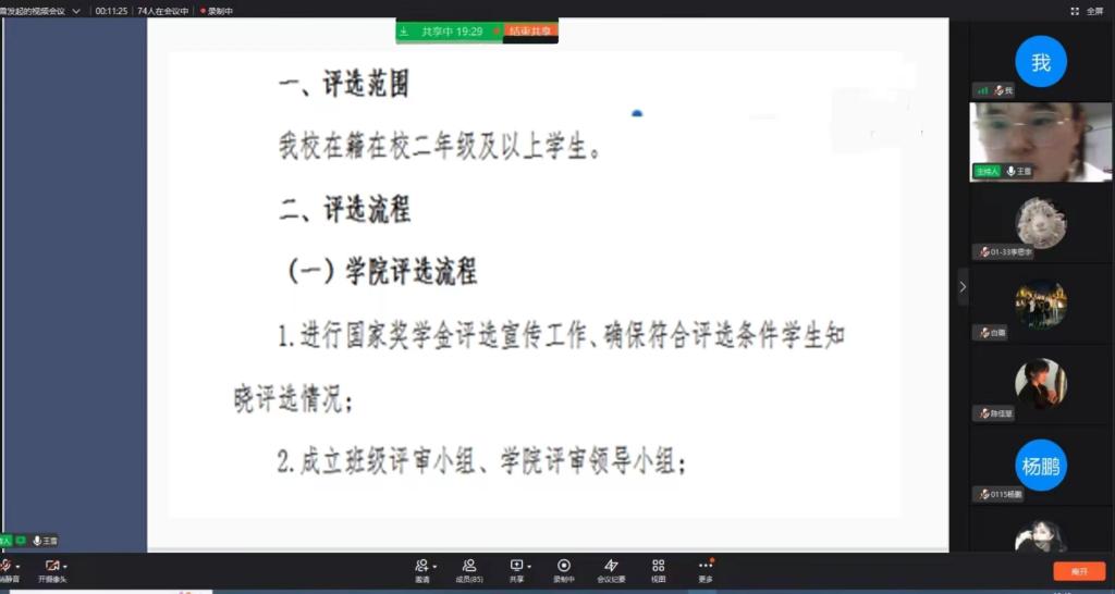 根据《关于做好2022年普通高等学校本专科生国家奖学金评审及材料报送和资金发放的通知》以及学校国家奖学金评选相关文件精神。为促进学生德育教育发展,2022年9月27日,土木工程学院通过线上组织学生召开国家奖学金评选工作宣讲会。