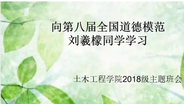 通过此次主题班会的宣传学习,希望广大土木学子以刘羲檬同学为榜样,要学习刘羲檬同学向上向善、孝老爱亲、奉献社会的高尚品德,自立自强、不畏艰难、勇于担当的优秀品质,奋斗进取、努力学习、乐观生活的精神风貌,用实际行动诠释中华民族的传统美德。