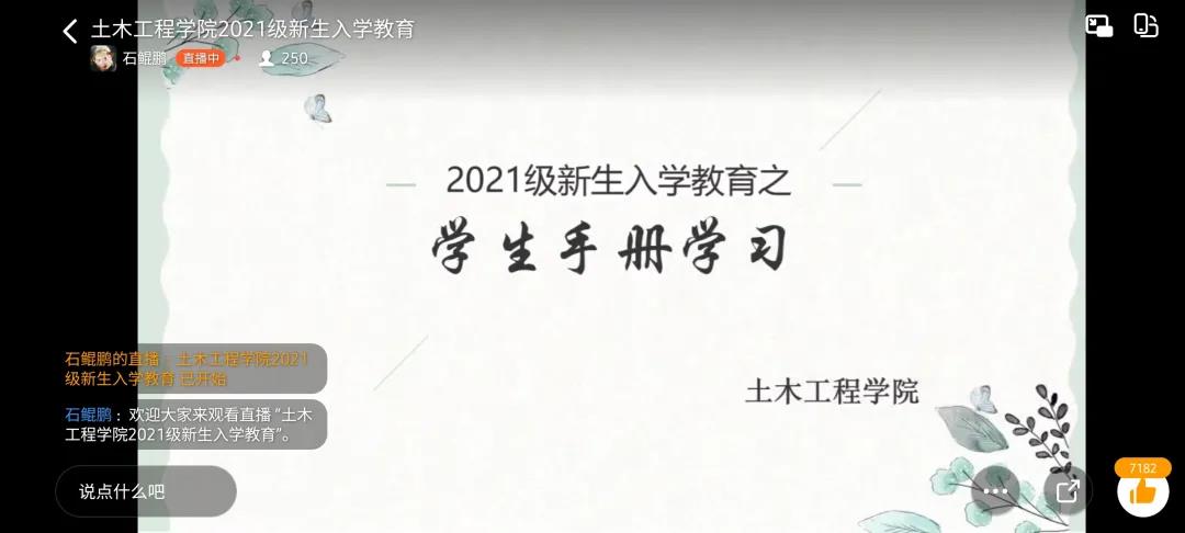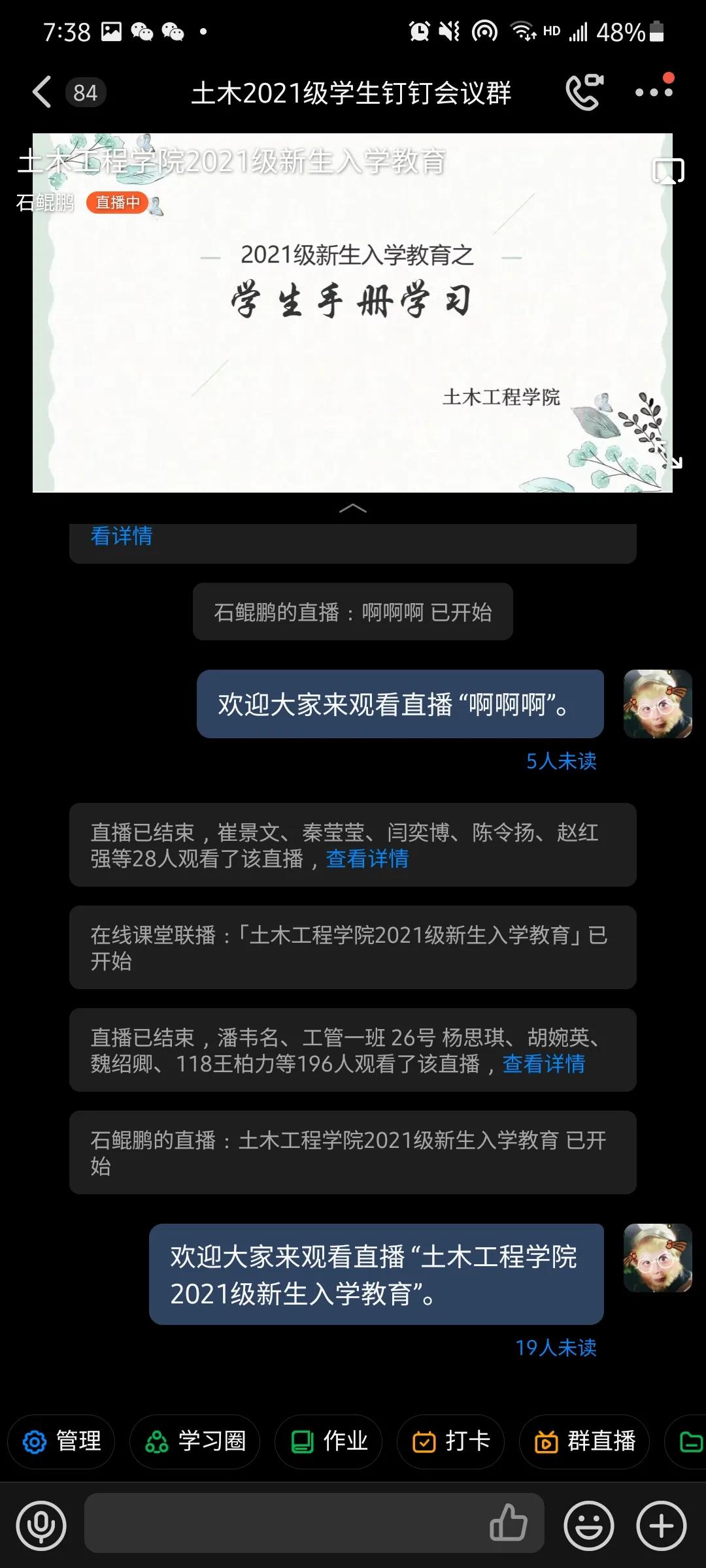 无规矩不成方圆《学生手册》是一盏指引学生在大学前行的明灯更是学生日后在校园学习、工作和生活所要严格遵守的基本准则。为了让2021级新生系统地了解欧博官网学生教育与管理等相关规定。10月2日晚6点,土木工程学院2021级全体新生在辅导员赵宇老师的带领下通过钉钉平台的方式共同学习了《欧博abg游戏登录入口学生手册》。
