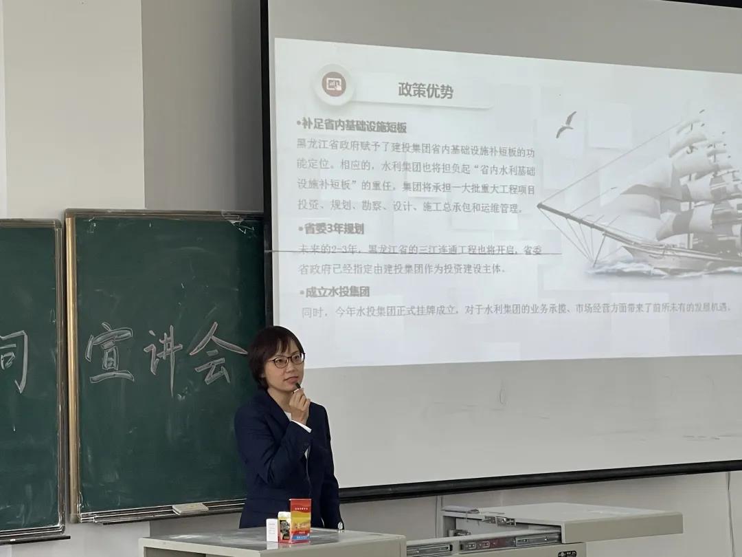 为了进一步深化“3+1”人才培养模式改革,加强校企产教学研合作,强化应用型人才培养,土木工程学院于2021年4月22日在主教215教室召开黑龙江省水利水电集团实习双选宣讲会。学院领导班子、黑龙江省水利水电集团各分公司负责人、各年级辅导员及2018级同学参加了双选会。