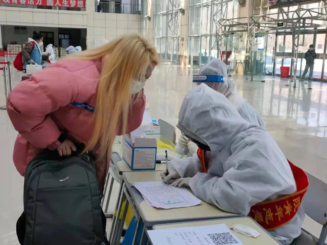 3月12日早7点,辅导员老师开始迎接第二批返校生。志愿者们认真引导返校学生排队,依次消杀、更换口罩、核验身份、测温、查验健康码等。