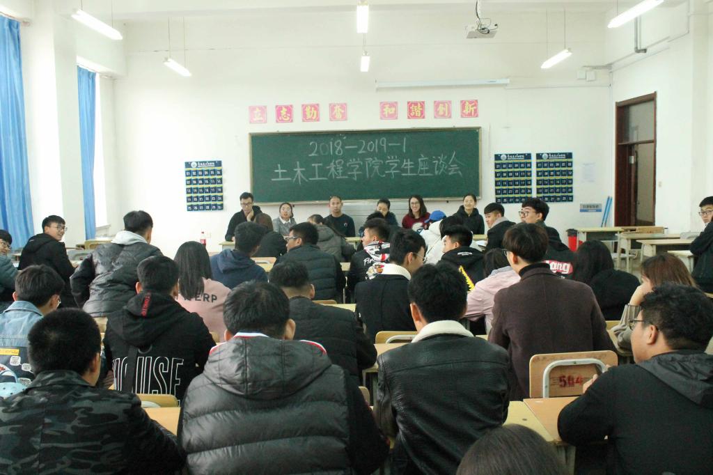 2018年10月26日12:10,土木工程学院在610教室召开学生座谈会,副院长于冰主持会议,副院长张佰真铭,系主任赵婧瑜、荆明野、办公室主任李莹娟、教学秘书焦君海出席座谈会,各年级学生代表参会。