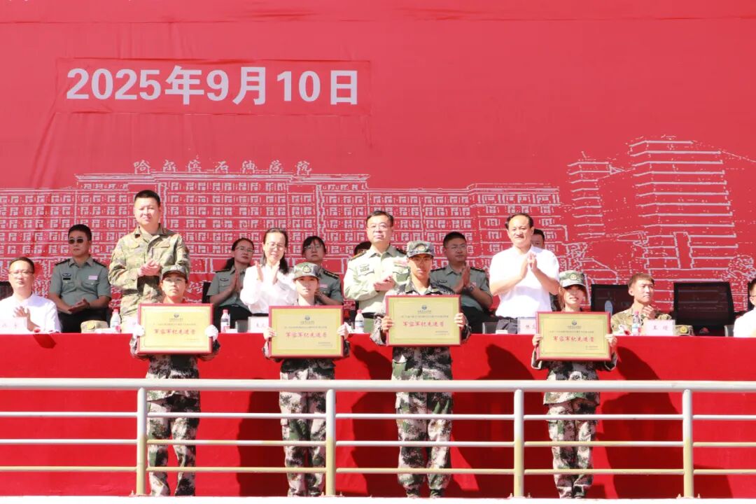 表彰环节中,人居环境学院凭借出色表现荣获“内务先进营”“军容军纪先进营”两项集体荣誉,因训练成果突出被授予“列队训练先进排”称号。学院代表上台领奖时,这既是对学子们十余天刻苦训练的肯定,更是对学院军训工作的高度认可。