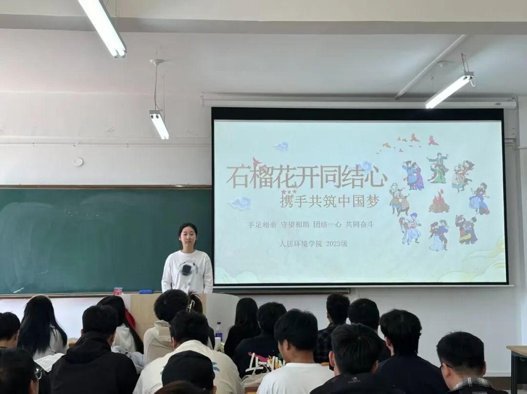 为扎实推进民族团结进步教育,引导青年学生铸牢中华民族共同体意识,在民族团结进步宣传月期间,人居环境学院组织各班级开展“石榴花开结同心携手共筑中国梦”主题班会,以专题学习与深度讨论为核心,让民族团结理念在交流中扎根。